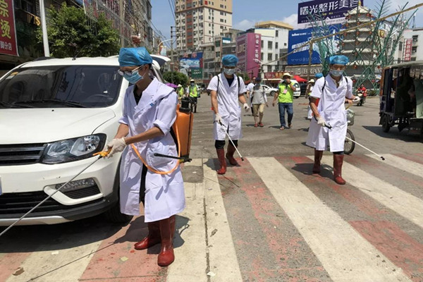 日中午,防疫人員頂著烈日,深入各已退水村(社區)開展消殺工作,對道路、明溝暗渠、公共場所等進行地毯式噴灑衛生防疫藥物,做到水退到那里,藥物就噴灑到那里,保證消毒防疫工作不留死角,徹底清除滋生傳染病的隱患,確保災后無大疫,保障廣大群眾身心健康。